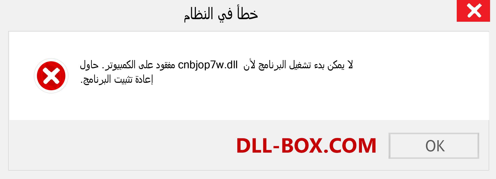1. لا يمكن بدء تشغيل البرنامج لأن cnbjop7w.dll مفقود من جهاز الكمبيوتر الخاص بك. الرجاء إعادة تحميل البرنامج \ التطبيق لعلاج هذه المشكلة.